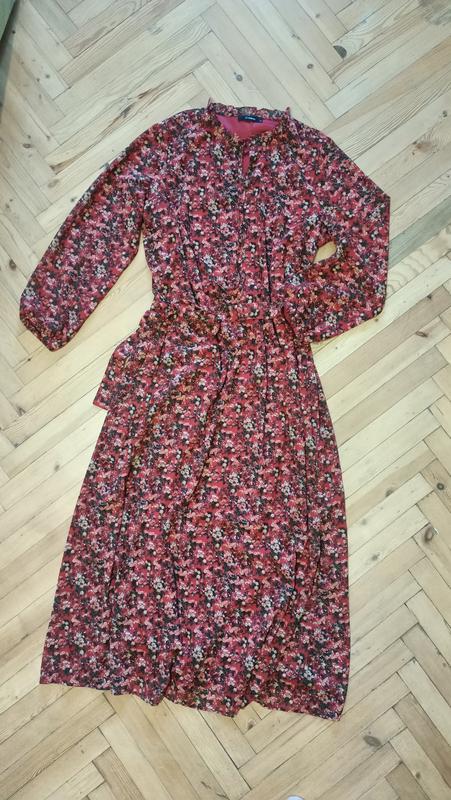 Дуже гарна сукня в ідеальному стані, як нова) тільки бірки не вистачає. Вдягалась один раз З підкладкою та поясом Розмір 44 ОГ 116 см Довжина рукава 62 см Довжина сукні 137 см