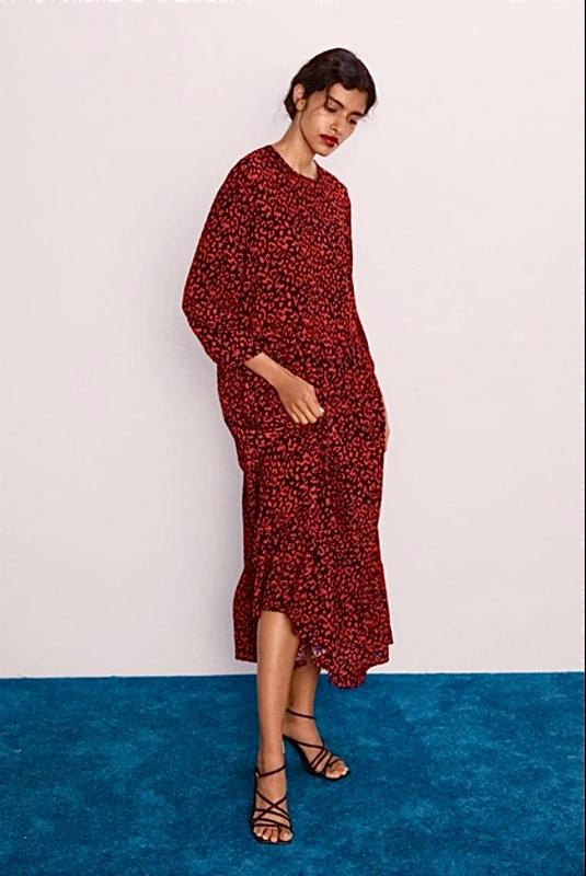Стильное красное платье в анималистичный принт,натуральное, легкое, очень приятное, низкоподавное, удобное, с рукавом 3/4, отменного качества и кроя.Замеры смотрите на фото.