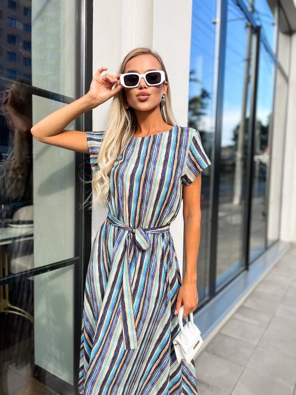 Тканина-шовковистий креп-софт Розміри С(42-44)М(44-46) Довжина 115-120см На талії зібрано на гумці, в комплекті йде тканинний поясок