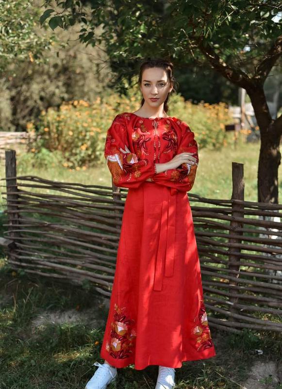 Длинное красное платье с вышивкой вышитое платье длинное платье вышитое женское 4608