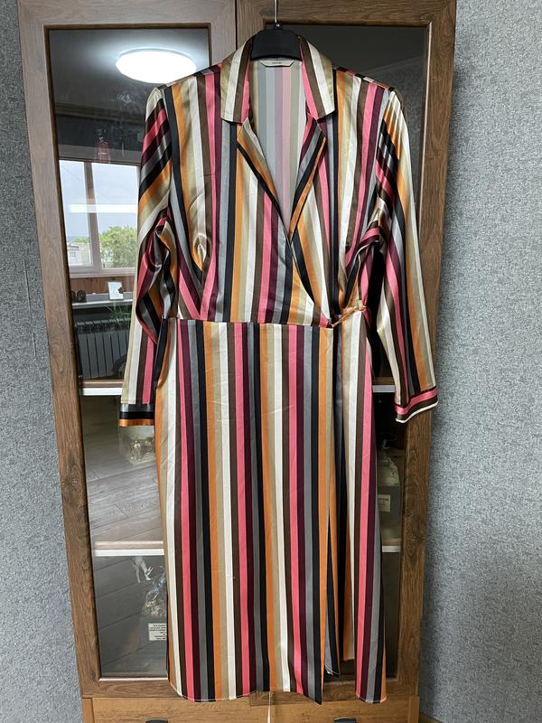 Стильное легкое платье, очень красивый принт. Ткань приятная на ощупь. ПОГ-55 см ( регулируется),NОТ-50 см ( регулируется, с запахом), длина рукава-62 см, длина -128 см