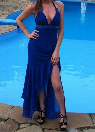 Шикарне шифонова випускну сукню з відкритою спиною,одягнене 2 рази,в вставлені погруддя чашка з ліфа щоб добре сидів верх,вообщем дивіться фото усе видно як воно сидить)зріст 164 див., параметри 89-64-89,босоніжки теж у продажу.