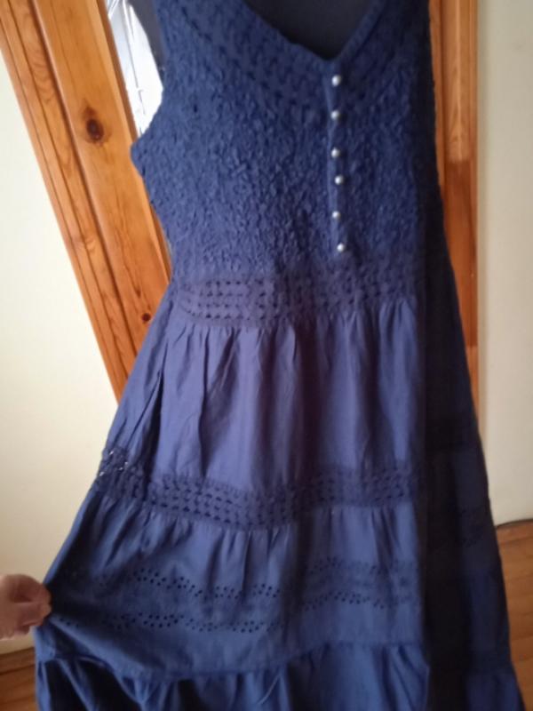 Длина 135 см. Полуобхват по груди 50 см. Лиф выполнен буфами полностью прострочен резиночкой и поэтому хорошо тянется. Размер указан 24.