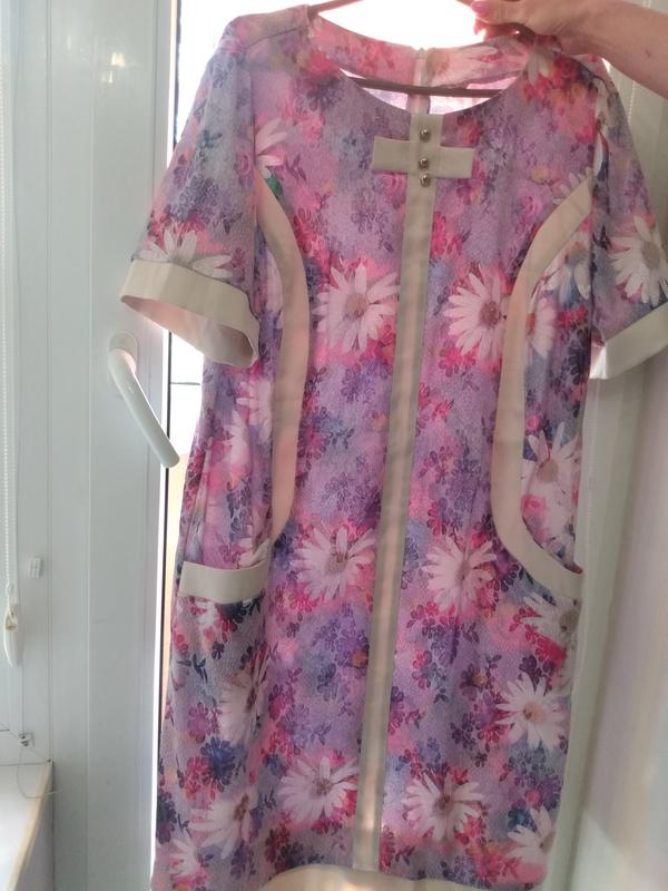 Продается женское платье с ромашками.Сезон лето,с коротким рукавом.Замеры:длина 101 см,плечи 43 см,грудь 56 см,талия 54 см.Размер 58.Пересылаю.