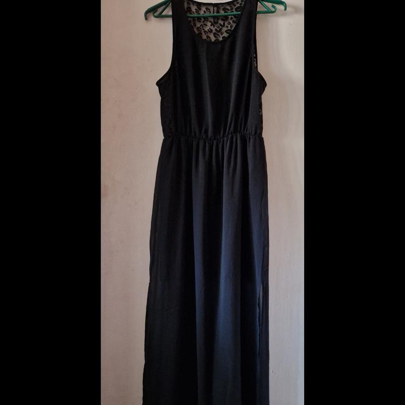 Платье- сарафан черный из шифона и с ажурной спинкой, разрезы по бокам. длина 140 пог 44 Пот 43 Отправлю безопасной доставкой при условии полной оплаты на ШАФУ
