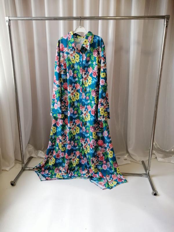 Довга сукня сорочка в квітковий принт з поясом подовженими косими боками виміри розмір на...