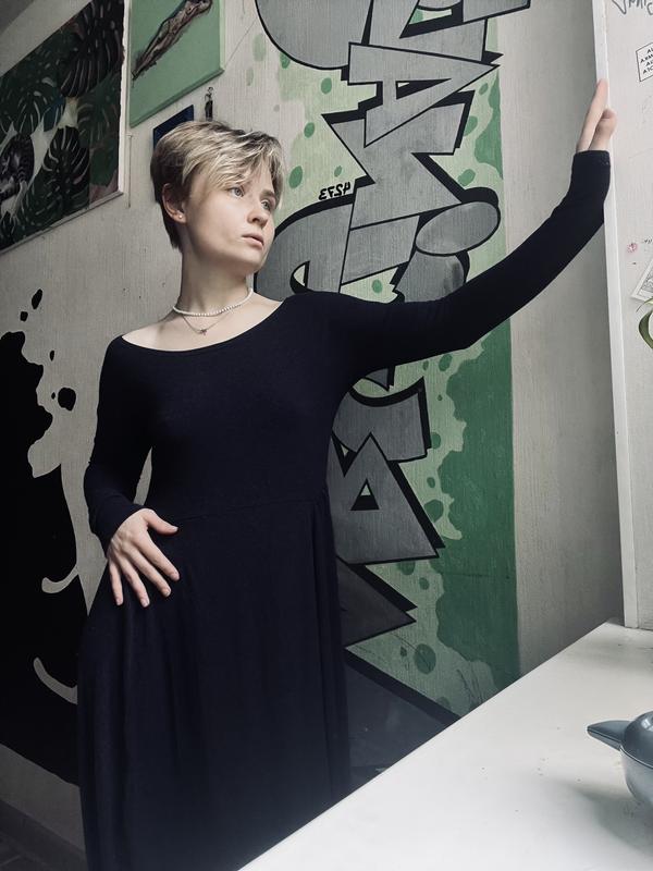 Цвет темно синий, длинная, тянется очень красиво, подойдет на м, л, хл, или же беременной женщине. Приятное к телу. Эффектов нет.