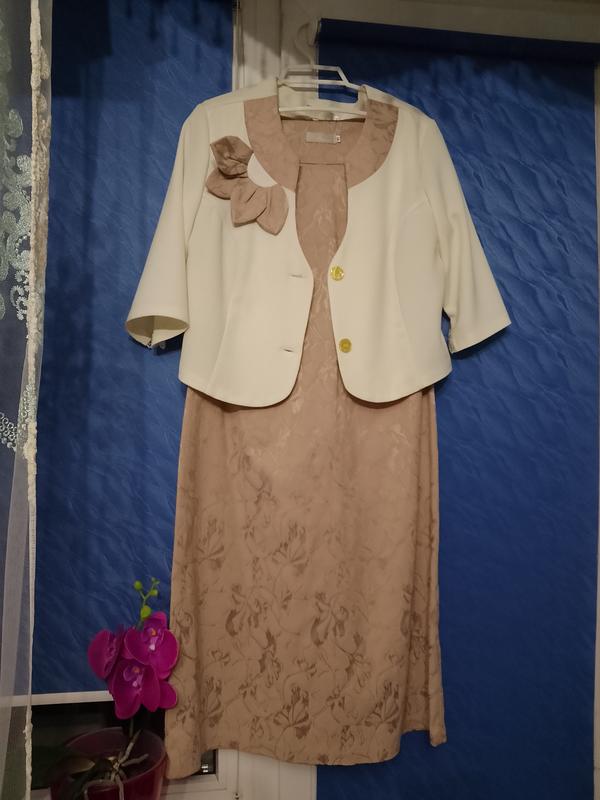 Продается женское платье с педжаком.Платье цвет бежевое,педдак белого цвета.Замеры:длина 106 см,грудь 51 см,бедра 53 см,плечи 43 см.Педжак замеры:плечи 43 см,грудь 52 см.Сезон весна-лето.Пересылаю.