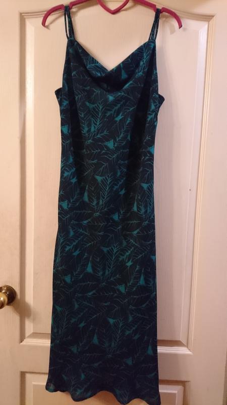 Красивый сарафан Amaranto в принт листочки. Основные цвета темно-синий и бирюзовый. Тонкие двойные брители, снизу по бокам разрезы. Размер на бирке 12,вполне подойдёт и на 10.