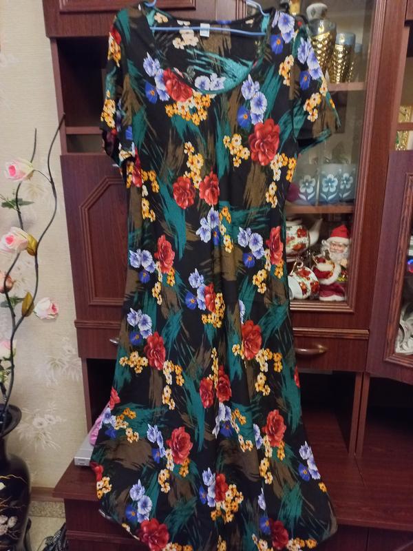 Новое, красивое женское платье. Размер 54-56. Замеры: плечо 8 см, рукав 22,5 см, ширина плечей 39 см, подмышки 61 см, длина 119 см. Состояние новое, одето не было, разве что только померяли. Цвет красивый, насыщенный. Пошив лёгкой трапеции. Бока приподняты. От подмышки по боковому шву длина 80-81 см. Бока приподняты, а впереди и сзади опущено. Лёгенькое и к телу приятное. Товар пересылаю Новой почтой и Укрпочтой.