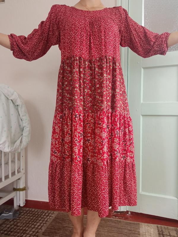🔸Сукня в стилі бохо, пошив печворк. 🔸Нова, без бірки, жодного разу не одягнута. 🔸Тканина турецький штапель. 🔸Довжина 110см, ширина в грудях 51см, довжина рукава від плеча 52см.