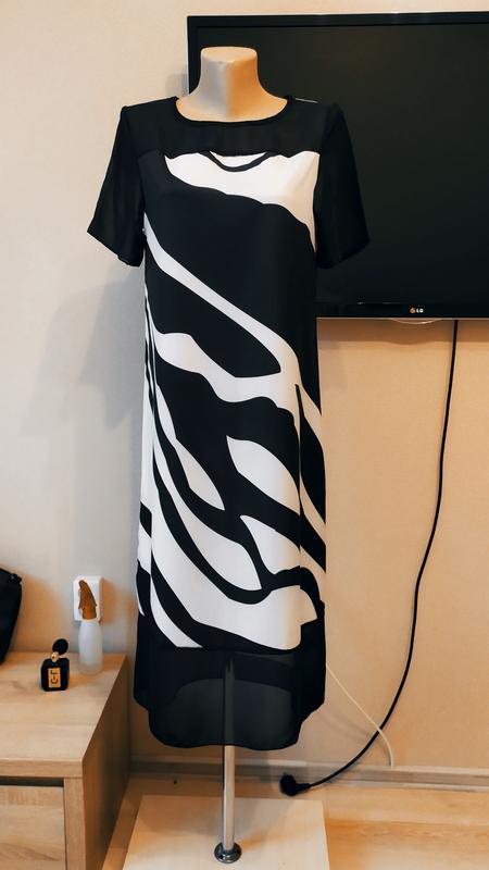Очень эффектное,новое платье.Легка, но не светится.Рукава и низ спереди-шифоновые..Пог-48,Пот-44,Пос-58,длина-115