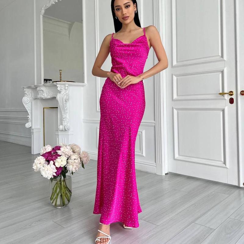 Есть видео платье шелк в горошек длинная фуксия малина черная длинная