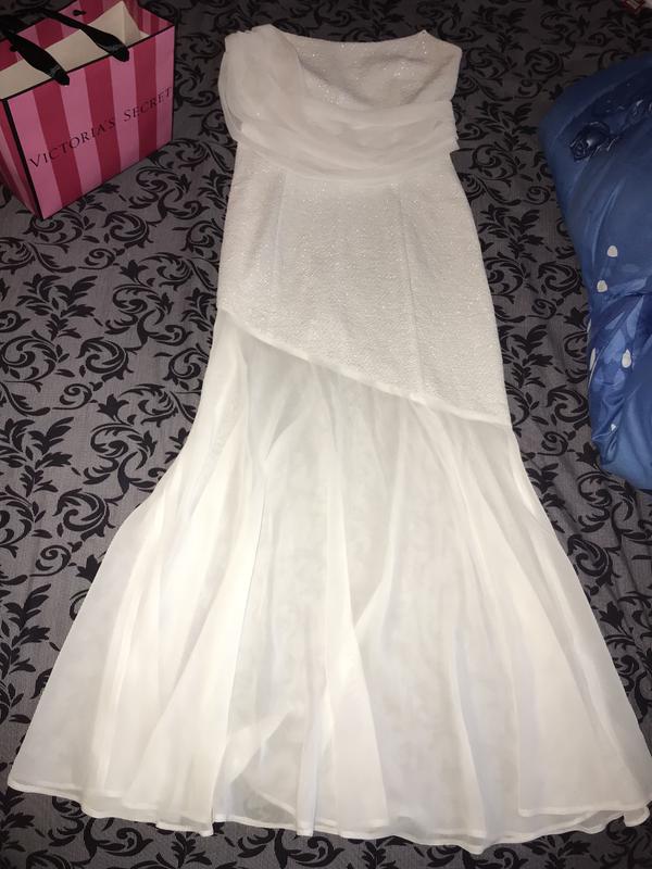 Воздушное белое платье с серебряной крошкой ,идеально ложится по фигуре ..есть один дефект нужно перешить лямки.возврата нет