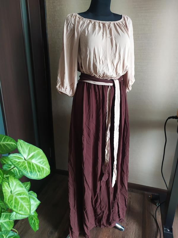 Длинное двухцветное платье из штапеля ,на резинке по талии и декольте,съемный пояс