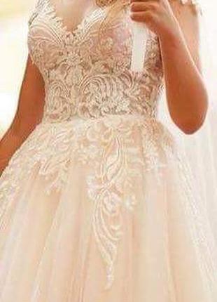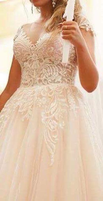 А-силует, колір пудра, шите в салоні КАРАМЕЛЬ Є кільце 1-ка, чохол, шлейф підчепний Ріст 1.65 + каблук Всі заміри кину, У Львові можлива примірка. Вдягала лише 1 раз ціна договірна