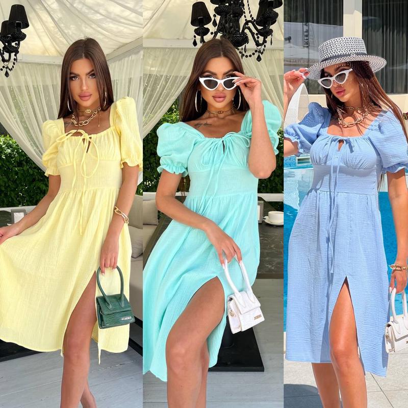 Модель ka 592 Женское платье Идеальный крой и длина Размерный ряд S,M,L,XL Цвета черный, малина, голубой, белый, желтый, беж и ментол Ткань турецкий муслин, приятный на ощупь; хб Платье мягко надевать под разную обувь ( кеды, кроссовки; босоножки) На груди регулируется завязками, по спинке резинка, рукавчики на резинке Супер качество