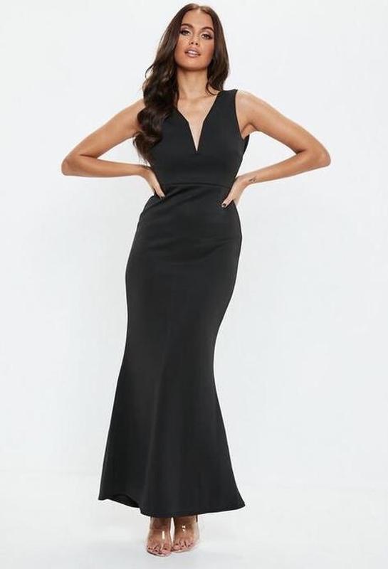 Чорна максі сукня з V-образним вирізом та відкритою спиною від Missguided. Розмір М. Йде на високий зріст.