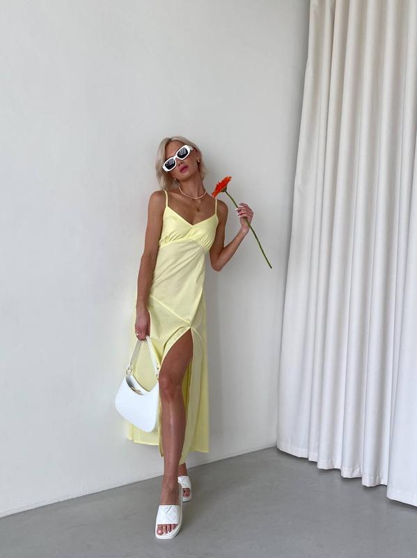 Платье голубое желтое зеленое длинное с разрезом легкое платье платье