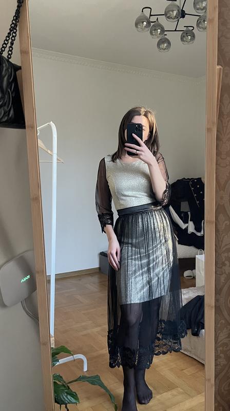 На фото не передать блеск ⭐️ этого красивого платья, одевала 1 раз подойдет на размер S/M. Можно одевать просто или с шифоном