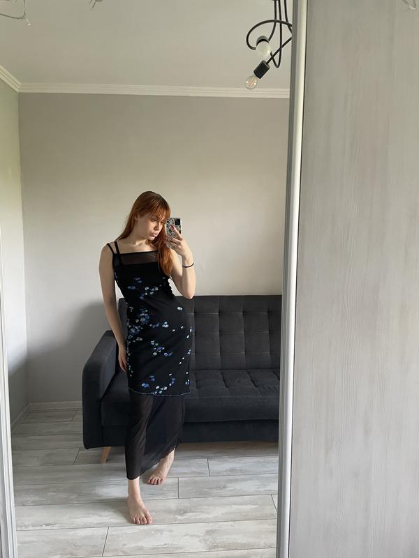 Черное платье с синими цветочками и удлиненной сетчатой подкладкой, размер S-M ‼️АКЦІЯ‼️1+1=3,1+2=5, 2+2=6! *дешевая единица в подарок! На фото одето на параметры: рост 169 см, бедра 91 см, талия 62 см, грудь 89 см Дотаточную информацию запрашивайте. Условия оплаты: -повна передоплата, - ПІСЛЯПЛАТИ НЕМАЄ - Безопасной оплаты нет
