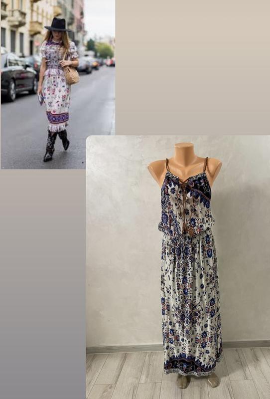 Фото на тілі нема) На модели например/ Бретели плетеные из экокожи) Есть резинка на талии) Фасон свободный в стиле бохо-гладиатор) Подойдет на с л европейский ориентуйтесь по замерам) Подкладки отсутствуют) Не тянется) Длина 139 см вместе с бретелями) Пог 44,5 см) Пот 34 см) Поб 57 см) Снизу 82,5 см) Продается так как есть без притензий и без возврата)