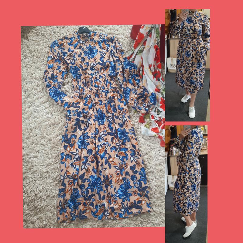 Шикарное длинное платье в цветочный принт, оригинальная расцветка , ткань вискоза. Ворот стойка , талия на широкой мягкой резинке , рукавчик тоже на резиночке , есть кармашки. Состояние идеальное. Размер указан 8, на фото на 12 и рост 170 Замеры плечи 40 рукав 63 ПОГ 48 ПОТ 30-45 ПОБ 61 ДЛИНА 124