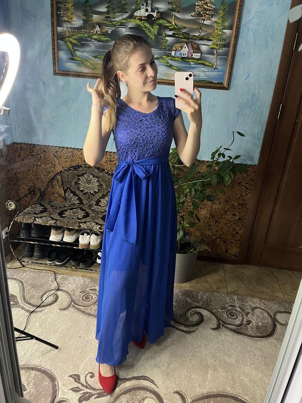 Платье на вечер, праздник, выпускной. Насыщенный цвет. Есть пояс. Без замков. Снизу подкладка по колено. Легкая ткань