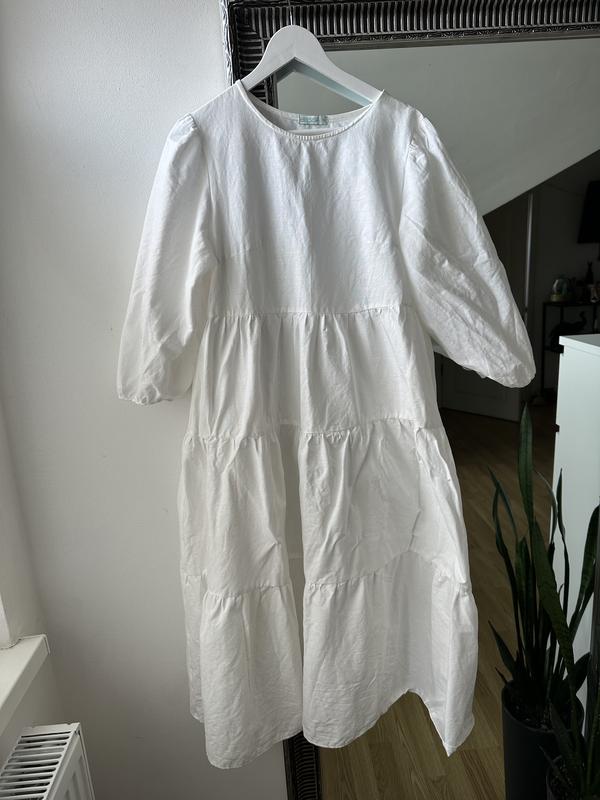 Белое платье из льна Плечи 40 см Груди 48 см Бедра свободно Длина 115 см
