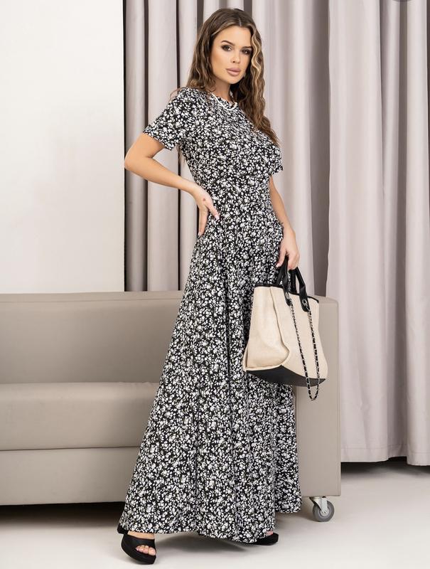Классическое цветочное платье, выполненное из тонкого софта черно-белого цвета. Платье макси длины с приталенным кроем и застежкой-молнией. Модель с короткими рукавами и расклешенным кроем низа изделия. ✔️Гарантия качества ✔️Доставка от 1 до 3 дней ✔️Наляжной платеж или полная оплата Безопасной доставки нет
