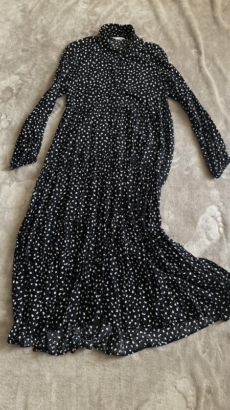 Платье Pull & Bear размер S, но такой фасон подойдет и на М. Состав визкоза, очень легкое. Спинка немного длиннее перед, перчатки на резинке, спереди пуговицы до талии. Очень комфортное. Замеры длина перед 118, спинка 122, длина рукава от горловины 68, под рукавами 47, талия 48.