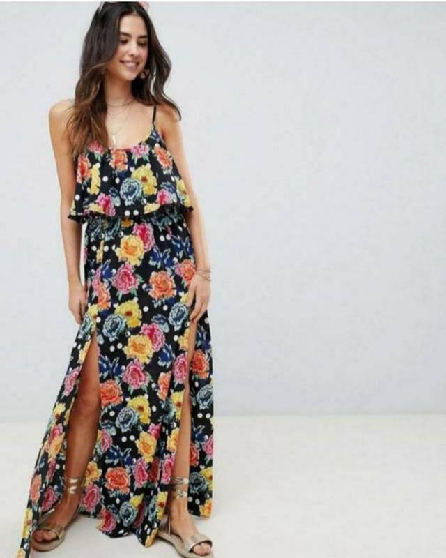 Очень красивое легкое длинное платье сарафан в цветочный принт Asos идеальное на пляж размер 6. В идеальном состоянии без дефектов. Ткань полиэстр, легкая, фактурно, не тянется. Спереди два разреза. Замеры груди 43см, талия резинка 30-45см, бедра 60см, длина от плеча 142см, длина от плеча до распылитель