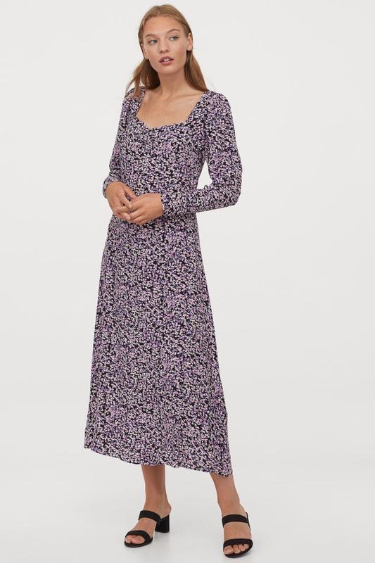 Милое платье макси от бренда H&M в цветочный принт с вырезом сердечком. Имеет длинные объемные рукавчики на пуговицах. Ткань 100% вискоза. Размер 34-6-160/80А Сяде добре на S і на не велику М Состояние новой вещи без дефектов и запаха.