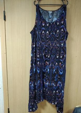 Платье без рукавов очень большого размера,по бокам длиннее,талия завышена, расклешенное.Ог 150,Об 210, длина 114.Новое,без бумажной этикетки.