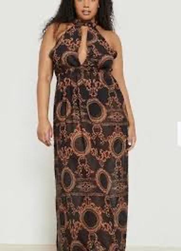 СТОК новое Платье в пол Длина-150 см Модель на фото рост 172 см размер 52 Ткань легкая не тянется Воротник на завязках Лиф на резинке,на пышную грудь Боковые высокие разрезы