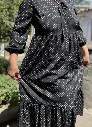 Платье легкое, не смотря на длинный рукав, не жарка! Цвет: черная в белый горох Размер: М ( модель размер 48)