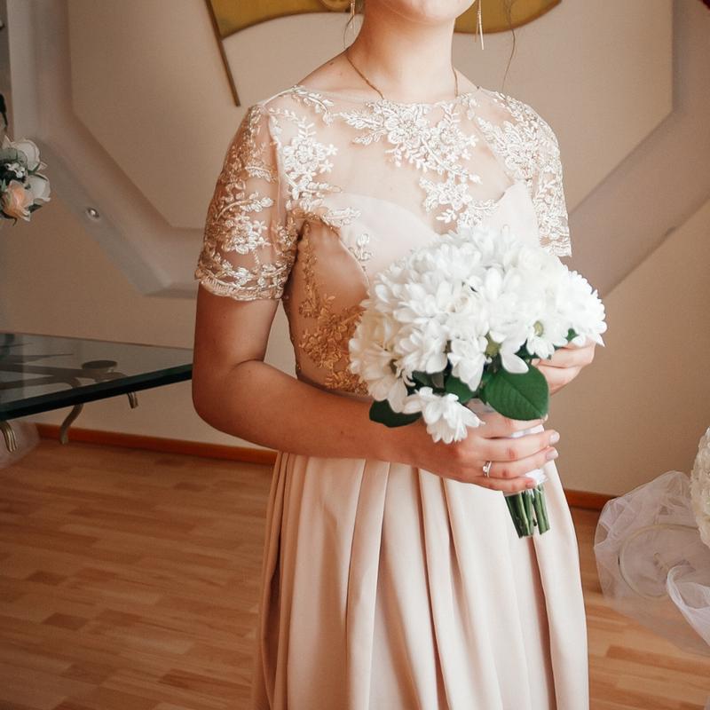 Платье одевалось один раз, в красивом состоянии. Затяжек, дирочок отсутствует. Имеет разрез спереди. Купила в прошлом году за 1500. Подходит как на S, так и для тех, кто между С и М.