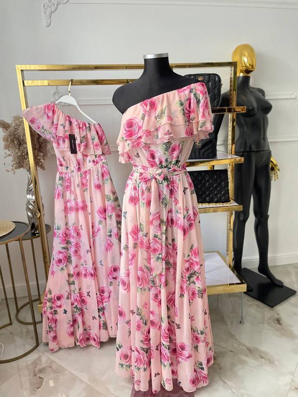 Сукня довга рожева в квіти