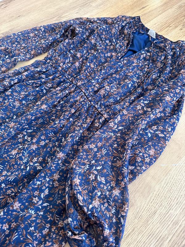 Дуже легка і зручна, розмір с, однак сукня вільного крою тому буде й до л Груди 44. Довжина 137, бедра 67 Плечі 40, рукав від шиї 67