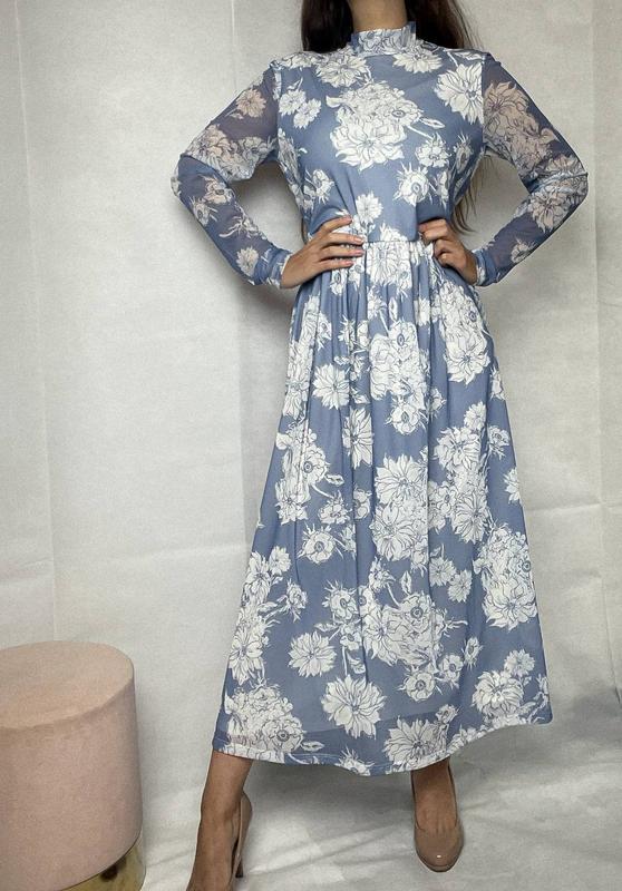 платье длинное в цветочный принт,мереживающий рукав очень красивая и женственная