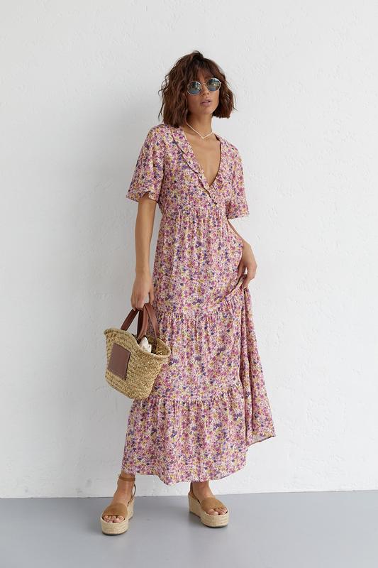 Длинное платье с оборкой и цветочным принтом