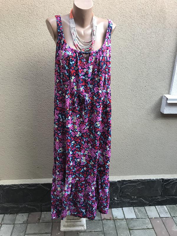 Длинное платье,сарафан в цветы,воланом по низу,открытая спина,большой размер