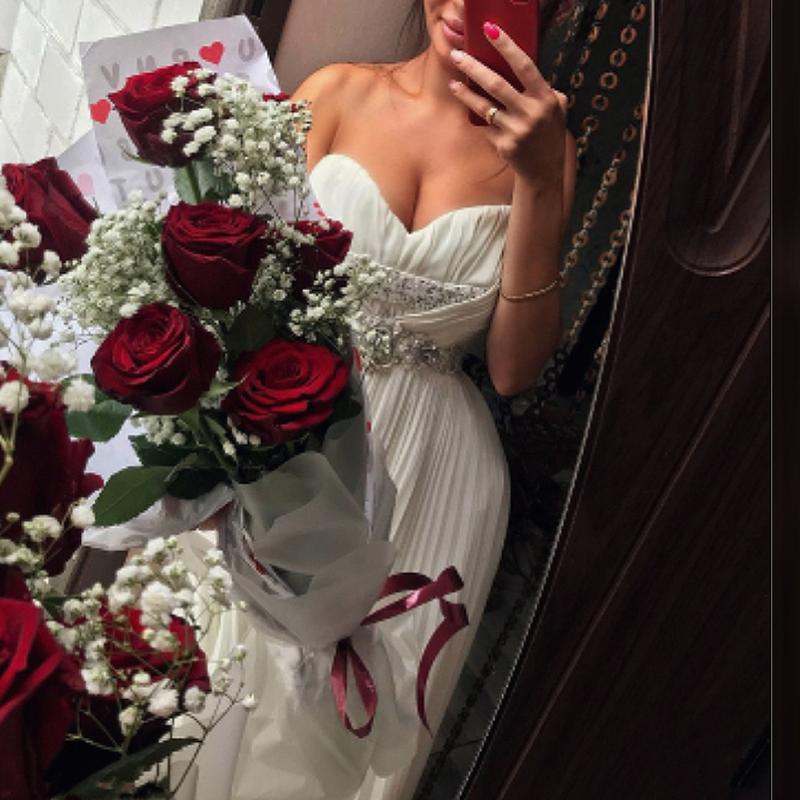 длина 132-137см молочного оттенка, есть подкладка. на 42-44. зади есть утягивающие завязки. видео обзор способен сбросить на Вайбер. наложенным платежом по новой почте 500 грн.