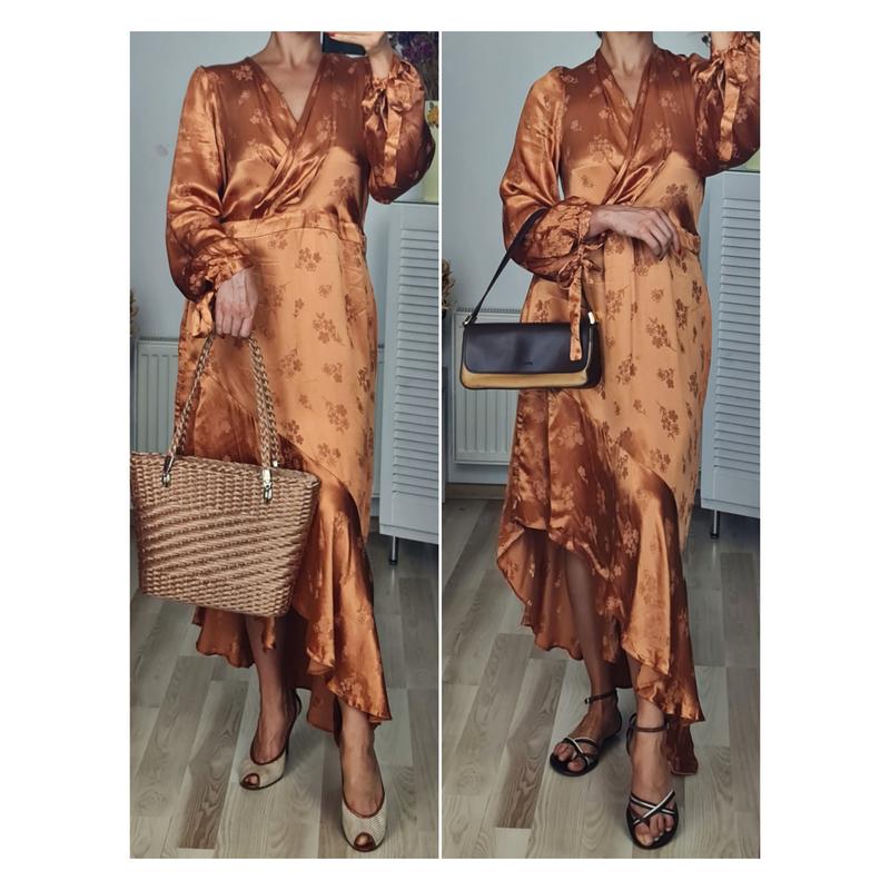 ❗️Пожалуйста, читайте ВНИМАТЕЛЬНО текст до самого конца! На большинство вопросов есть ответ ниже или же в пунктах сайта. ❗️ ⚠️НЕ СТОК І НЕ СЕКОНД ⚠️Кнопку "КУПИТЬ" НЕ нажимайте, некоторые службы доставки не могу подтвердить по техническим причинам. Пишите дани для отправки в сообщение. ⚠️Отправка любой почтой каждый день. 📍📝🖊Подписывайтесь, обновление товара каждый день, разная ценовая категория! 🛍Выбирайте подарок за покупку в объявлениях до 300грн или с пометкой ПОДАРОК(условияи есть в описаниях, НЕ ВСЕ вещи до 300 гривен в подарок)💍💄👠👝🧥👖🩱🥻👗 100% вискоза. Бренд на фото. Новое, с биркой, имеется несколько размеров, стоило 50евро. Платье роскошное!🥰 Очень красивый цвет (оранжевый/медный/бронзовый) и ткань(как жаккардовый шелк), цвет лучше всего передан на последнем фото. Можно одеть на торжественное событие или прогулку, под каблук или босоножки без каблуков. Также красиво смотрится с ремнем. Спинка приоткрыта, да если не устраивает, то можно пришить молнию или пуговицы/заклепки, или надеть майку на бретельках. Спереди на запах, но грудь не видна, также можно поставить булавку или подшить, чтобы не раскрылось.