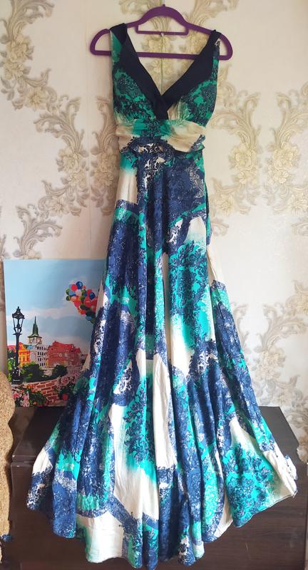 дефектов нет причина продажи - стала тесная благодаря резинке сзади (видно на фото) подойдет на полуобхват под грудью 36-46 см длина из под груди до низа 121 см платье завязывается на шее приятная ткань
