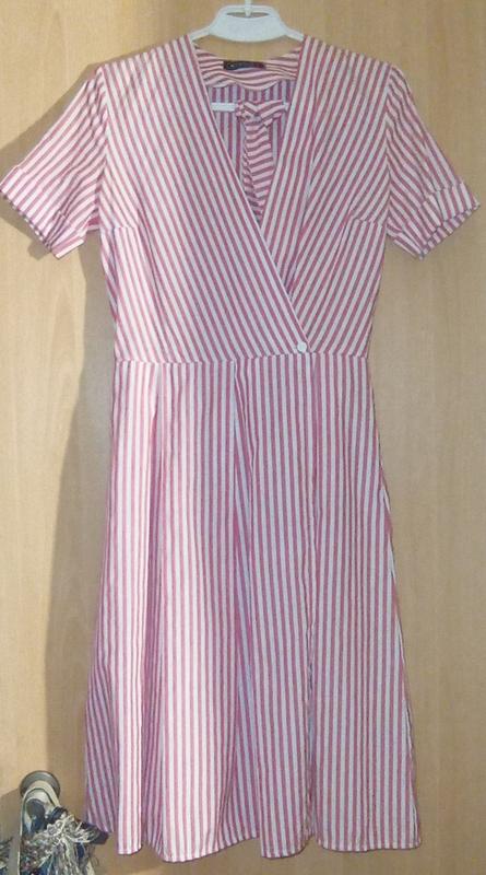 Плаття в новому стані(один раз вдягнуте), рожеве в білу смужку, на запах розмір S
