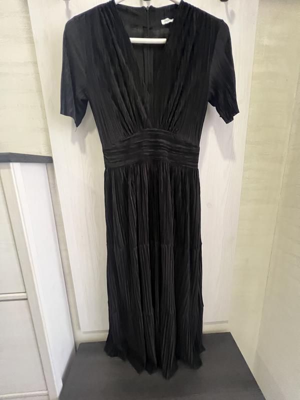 Черное платье материал приятный к телу мелкий плиссе