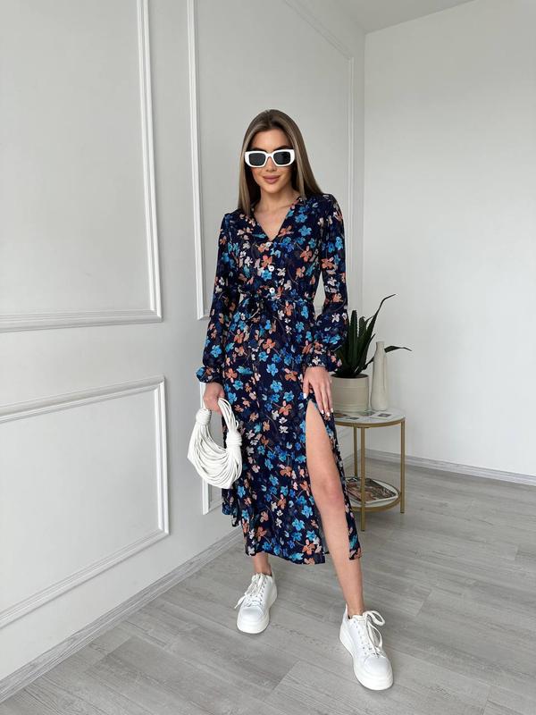🥰 Новинка Сукня Фото реал ▫️Модель: 370tin ▫️Ткань: Премиум Софт ▫️Размер: универсальный 42-46 ▫️Цвет: черный, белый, темно синий Изысканное и романтичное платье с цветочным принтом и с соблазнительным вырезом❤️