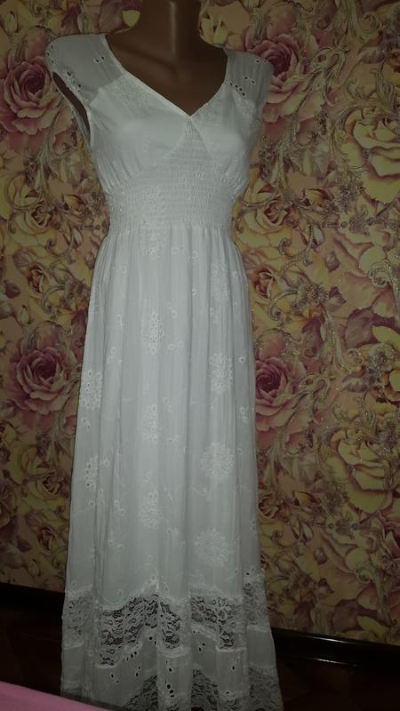 Белое длинное платье из прошвы