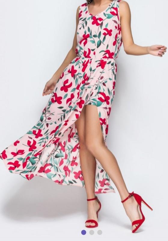 Эффектное платье-макси с фиксированным запахом по спинке. Высокий разрез красиво открывает ножки. Резинка на талии визуально делает модель силуэтной. Отлично подойдет для девушек с фигурой «треугольник». Длина 135 см, талия 76, о/г 82.